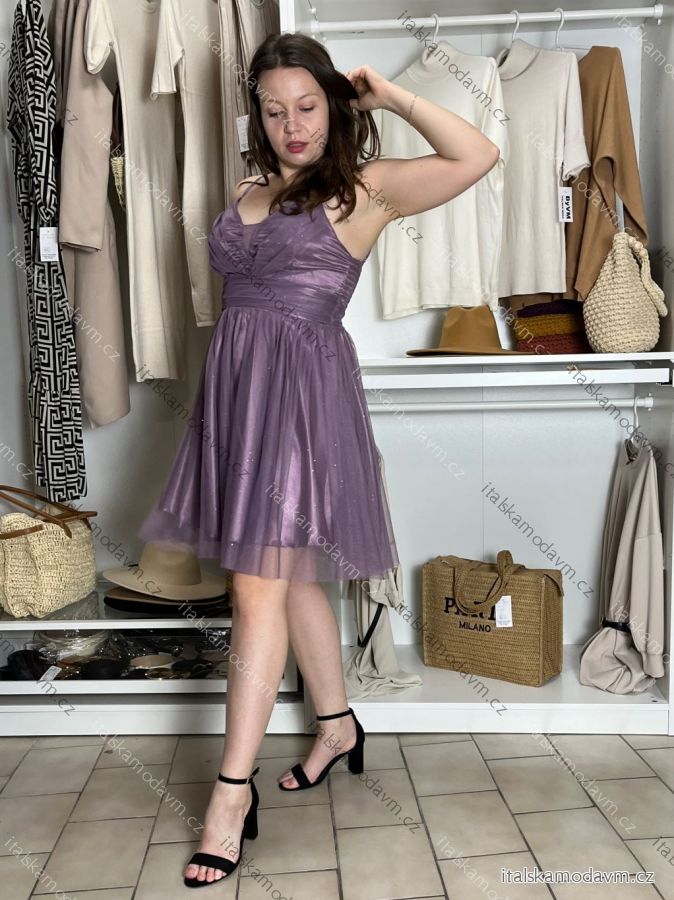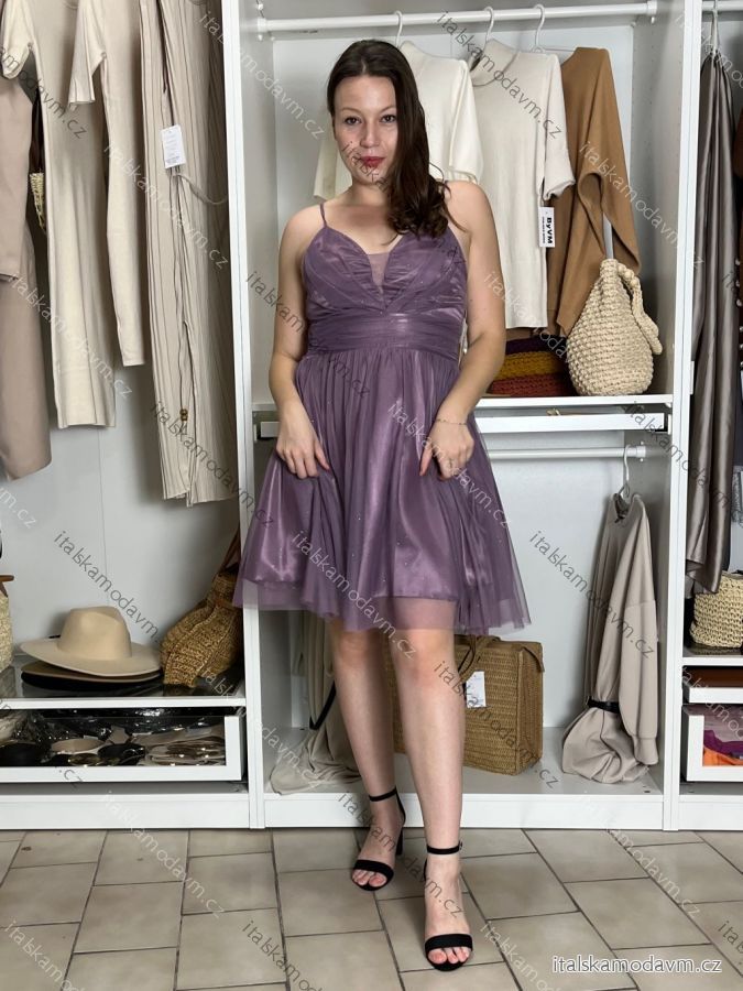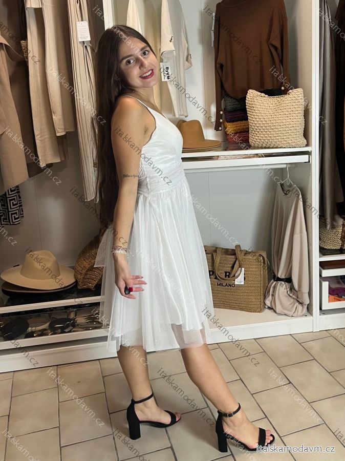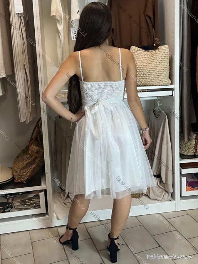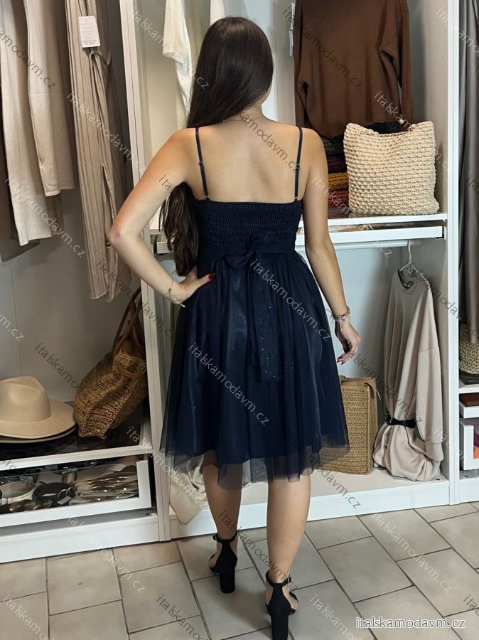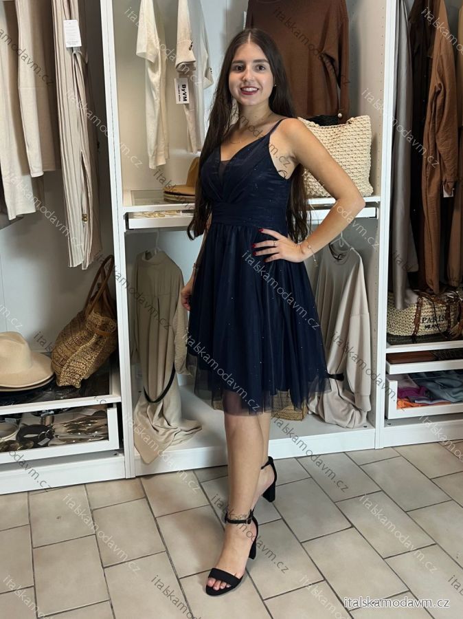 Šaty společenské na ramínka tylové dámské (XS/S/M/L ONE SIZE) ITALSKá MóDA IMC23498/DUR tmavě modrá S/M/L