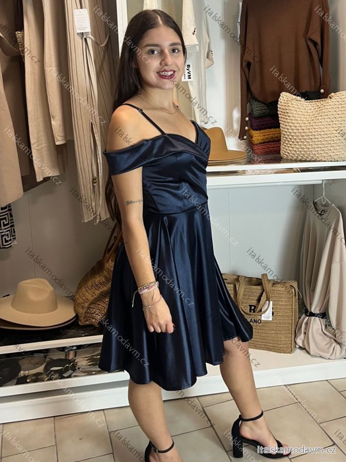 Šaty společenské saténové carmen dámské (S/M ONE SIZE) ITALSKá MóDA IMHMS23087