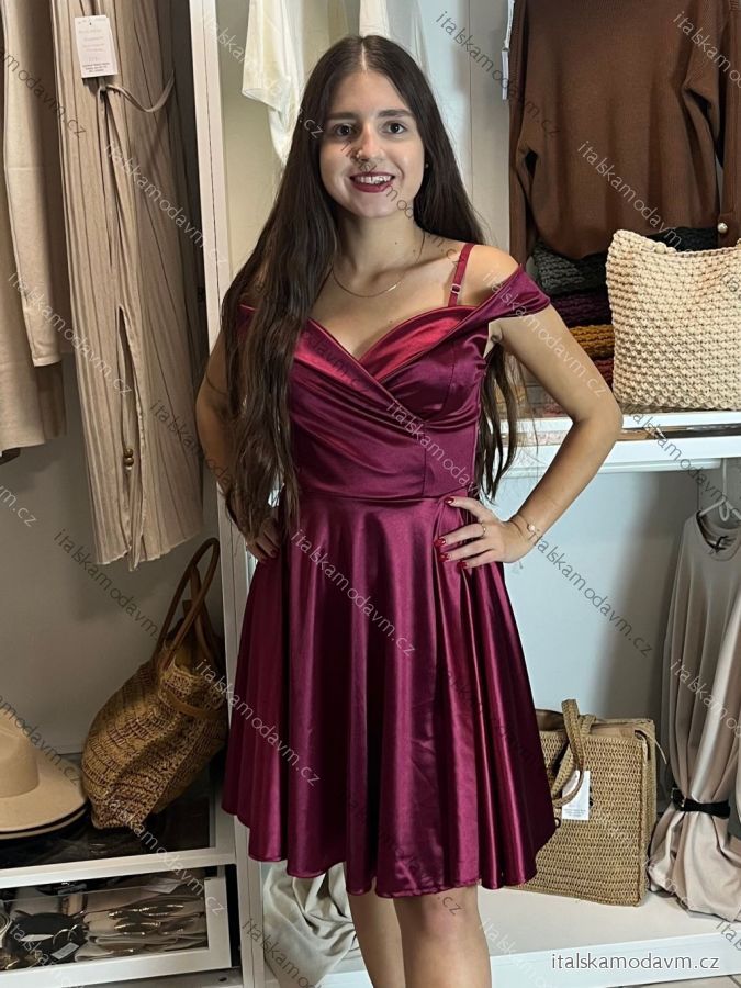 ZBOŽÍ (21607) > Šaty společenské saténové carmen dámské (S/M ONE SIZE) ITALSKá MóDA IMHMS23087