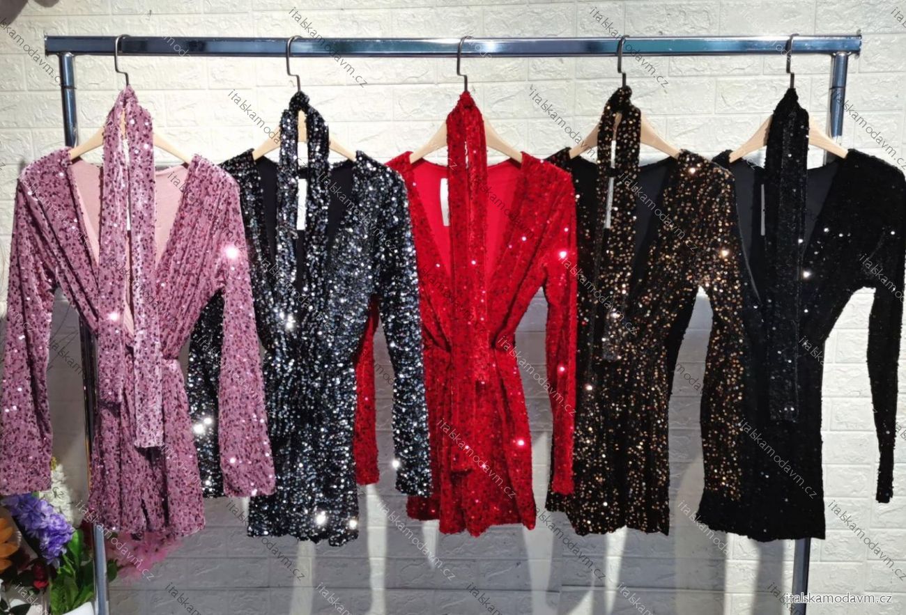 Šaty spoločenské elegantné trblietavé dlhý rukáv dámske (XS/S/M ONE SIZE) TALIANSKA MÓDA IMM25M24769