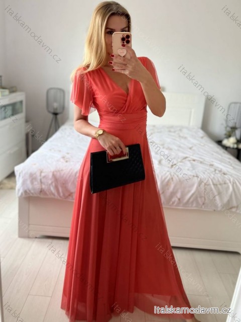ZBOŽÍ (21710) > oblečenie dámske (17519) > šaty (9141) > ŠATY SPOLOČENSKÉ (2786) > Šaty plesové dlhé (1794) > Šaty spoločenské elegantný krátky rukáv dámske (S/M ONE SIZE) TALIANSKA MÓDA IMPSH223589L/DUR lososová S/M