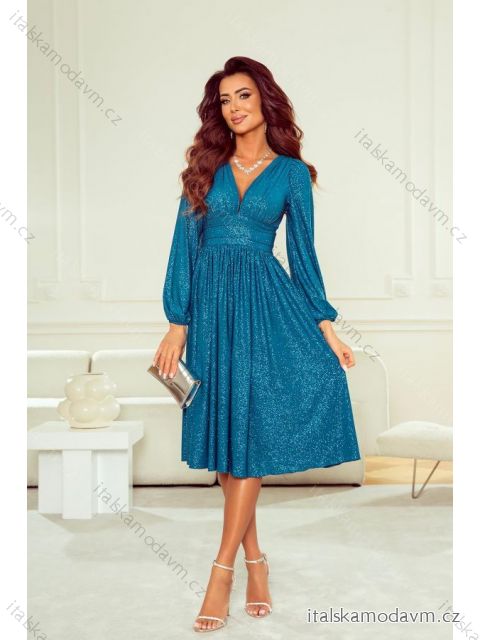 Šaty spoločenské trblietavé s flitrami dlhý rukáv dámske nadrozmer (34-46) POLSKÁ MÓDA PMLWD23KLARA1 tyrkysová 44