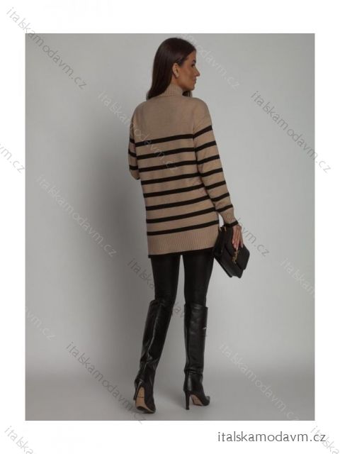 Šaty svetr pletené s rolákem dlouhý rukáv dámské proužek (S/M ONE SIZE) POLSKÁ MÓDA IMLAZ2355570-1