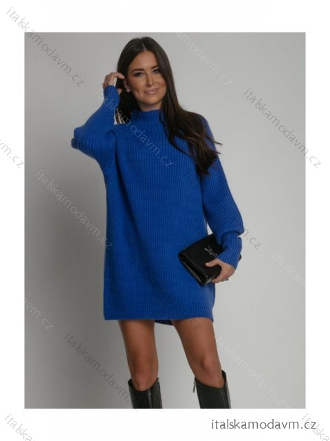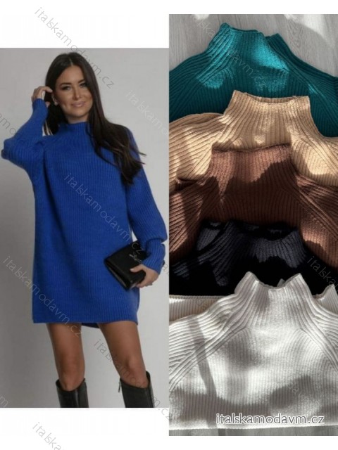 Šaty / svetr prodloužený pletené s rolákom dlhý rukáv dámske (S/M/L/XL/2XL ONE SIZE) POLSKÁ MÓDA IMLAZ23FY55835-1/DR M / L biela