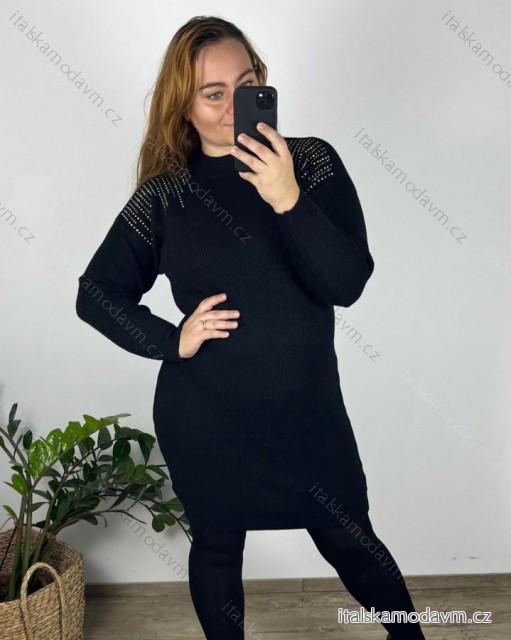 Šaty teplé dlouhý rukáv dámske nadrozmer (42/44/46 ONE SIZE) TALIANSKA MÓDA IMD24428/DR 44/46 čierna