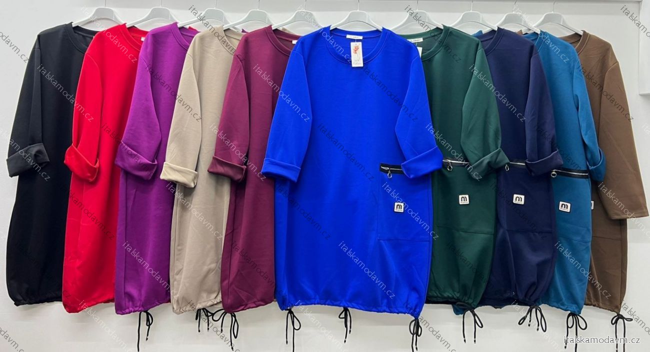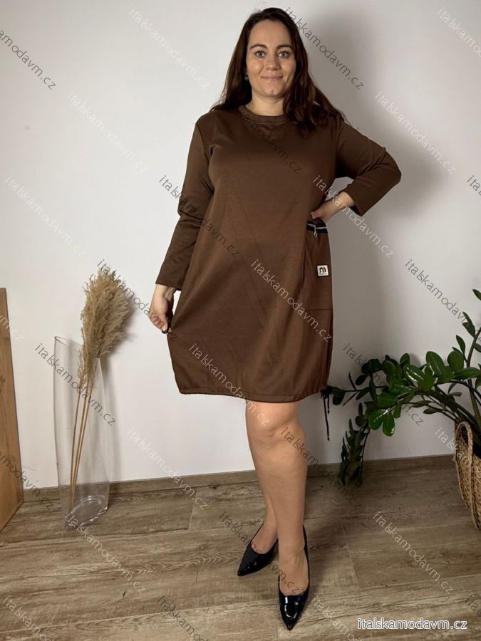 Šaty teplé dlouhý rukáv dámské nadrozměr (50/52/54 ONE SIZE) ITALSKÁ MÓDA IM425659