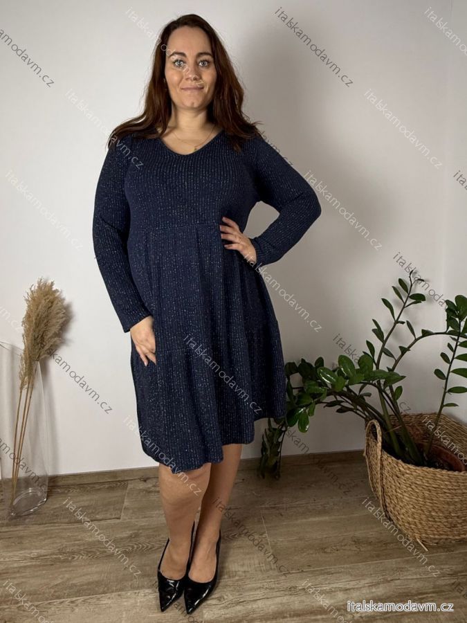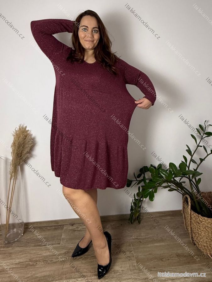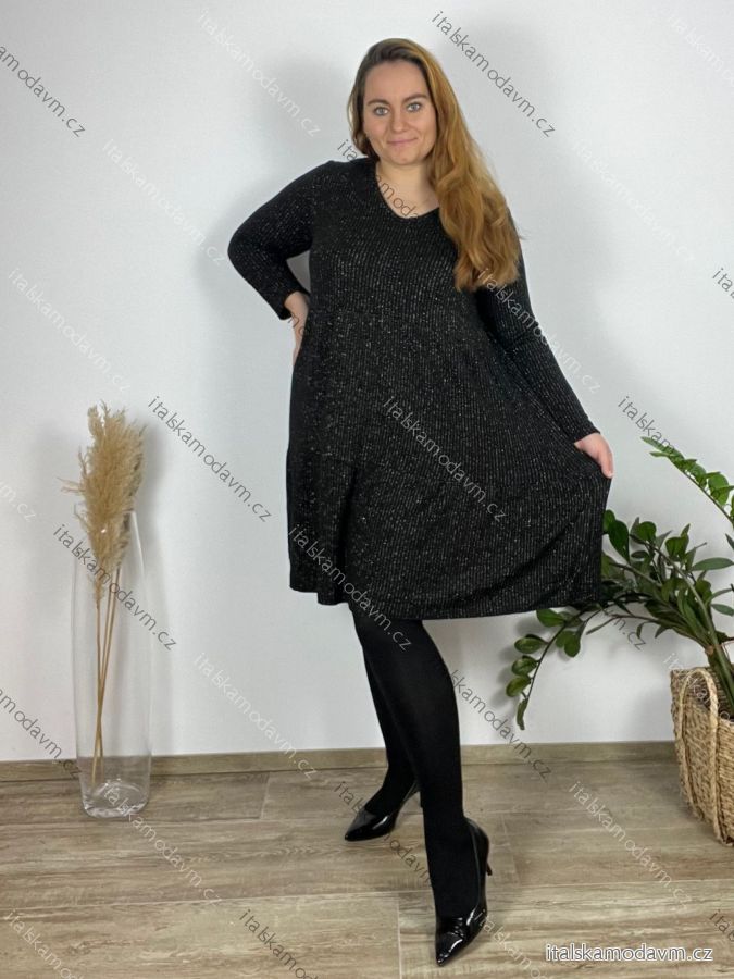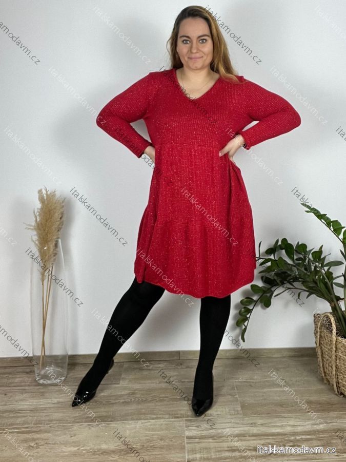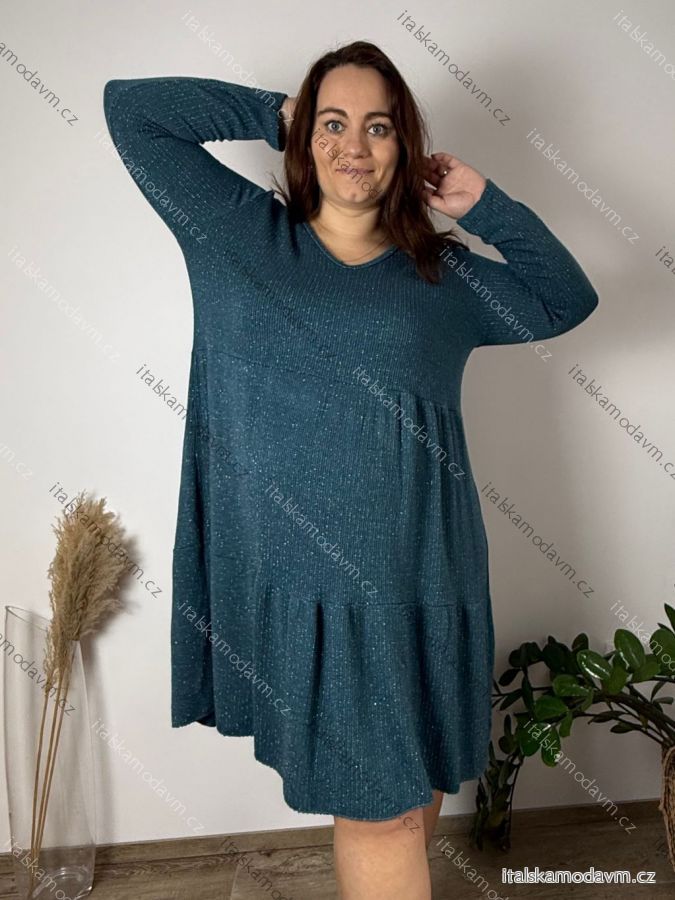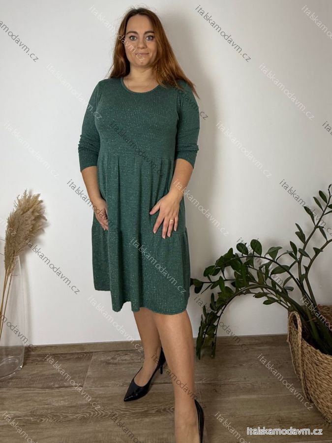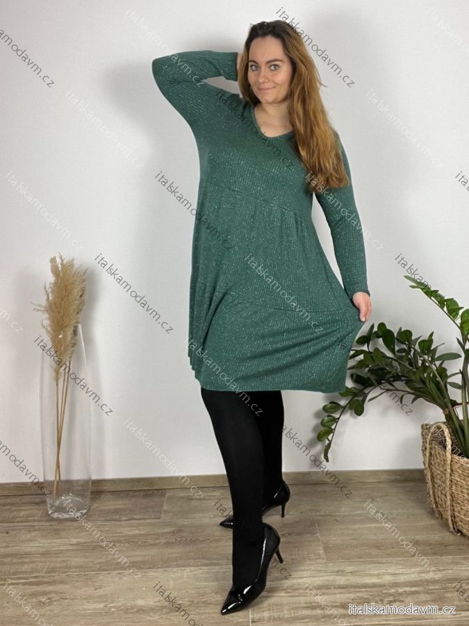 Šaty teplé dlouhý rukáv dámské nadrozměr GIZA (52/54/56 ONE SIZE) ITALSKÁ MÓDA IM425807/DUR zelená 52/54/56