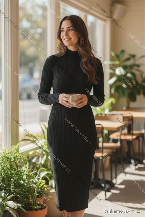 Šaty teplé dlouhý rukáv dámské (S/M/L ONE SIZE) ITALSKÁ MÓDA IMD25273