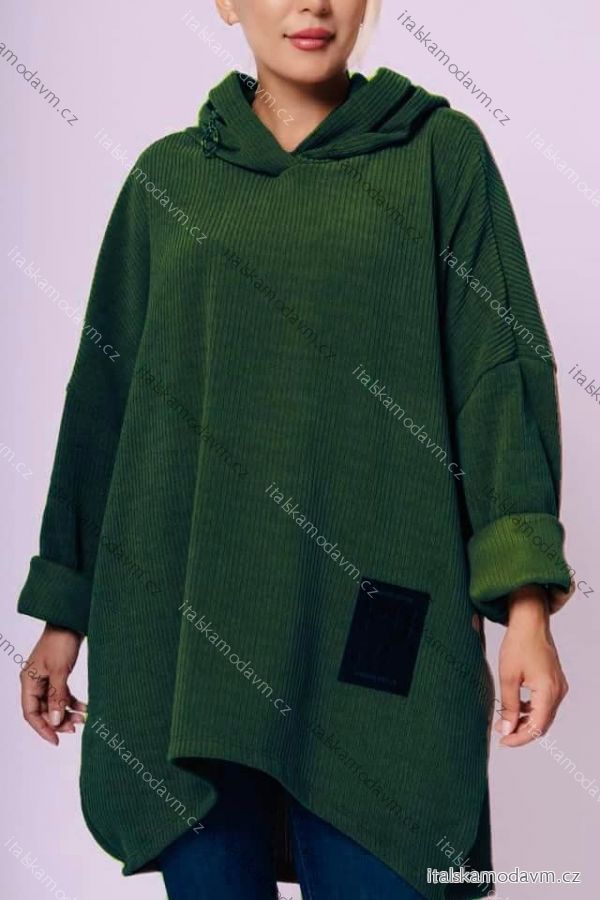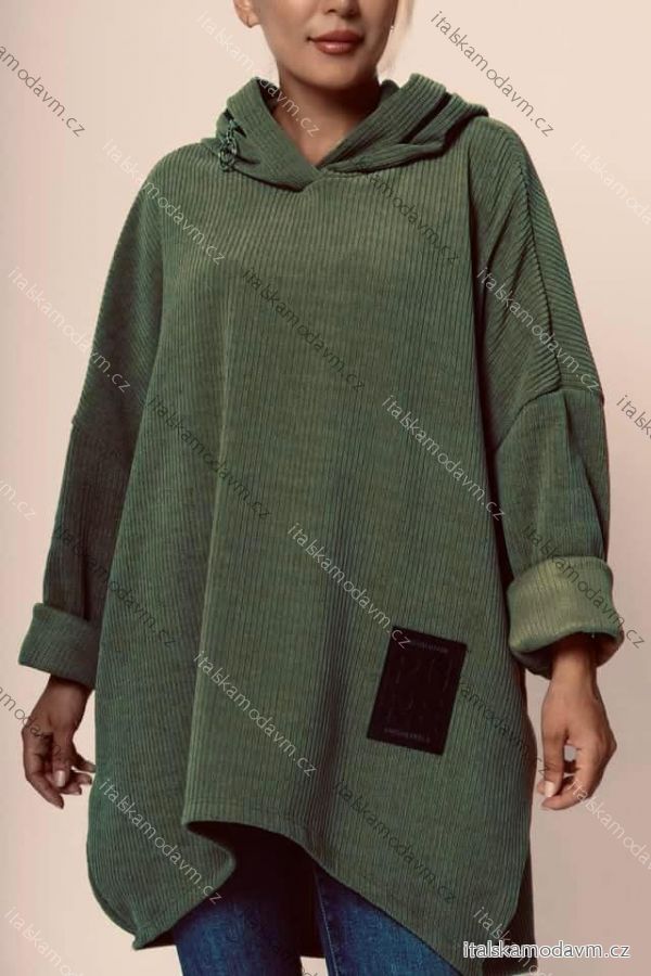Šaty teplé mikinové s kapucí dlouhý rukáv dámské nadrozměr (54/56/58 ONE SIZE) ITALSKÁ MÓDA IMD24407