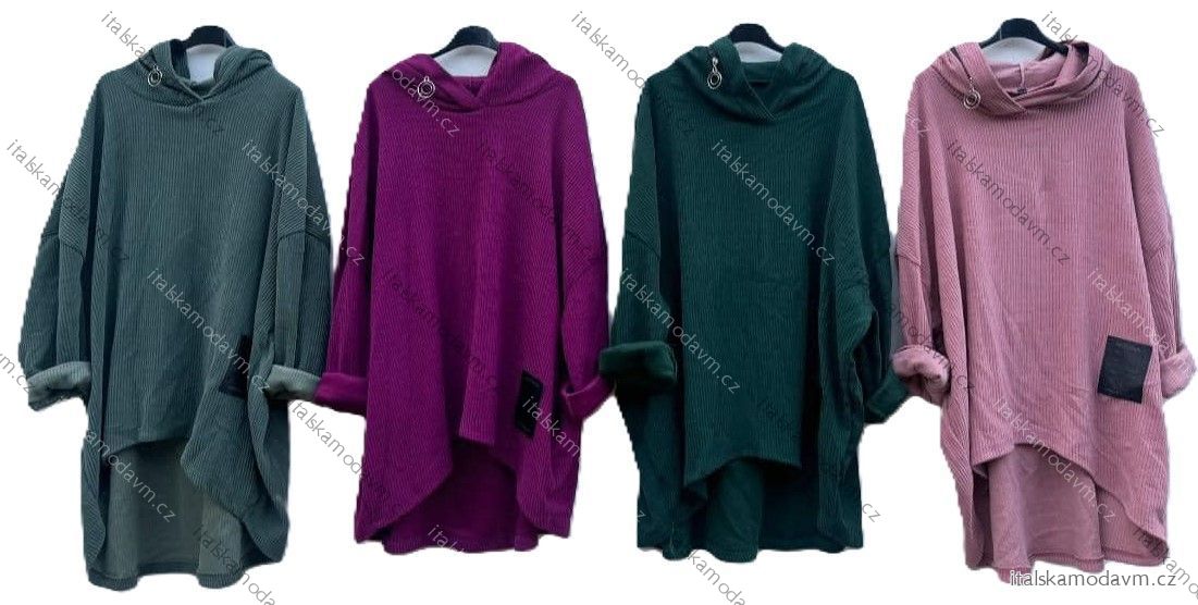 ZBOŽÍ (22805) > Šaty teplé mikinové s kapucí dlouhý rukáv dámské nadrozměr (54/56/58 ONE SIZE) ITALSKÁ MÓDA IMD24407