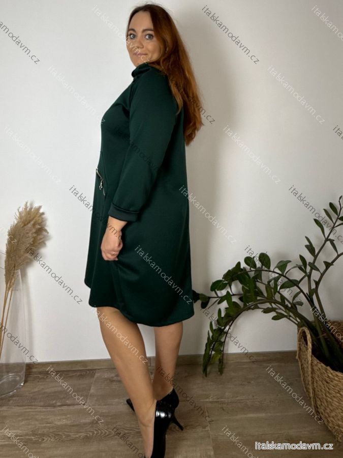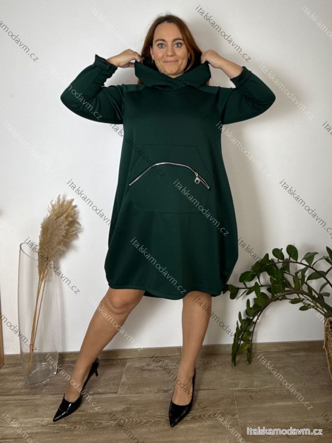Šaty teplé s kapucí dlouhý rukáv dámské nadrozměr ZOJA (50/52/54 ONE SIZE) ITALSKÁ MÓDA IM425697/DUR 50/52/54 zelená smaragdová