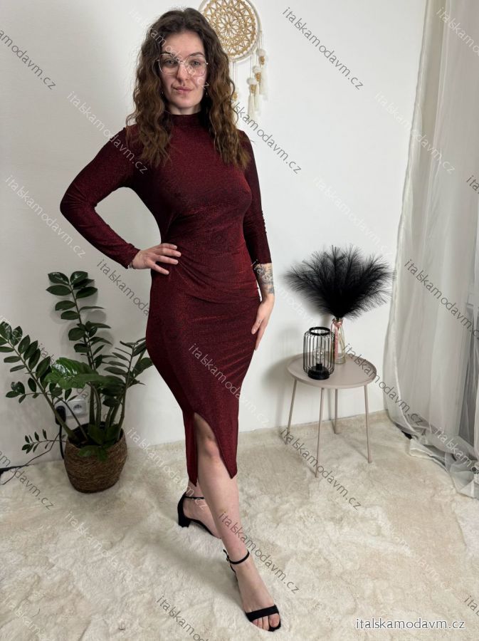 ZBOŽÍ (22070) > Šaty třpytivé elegantní dlouhý rukáv dámské (S/M/L ONE SIZE) ITALSKÁ MÓDA IMD251114/DU vínová S/M/L