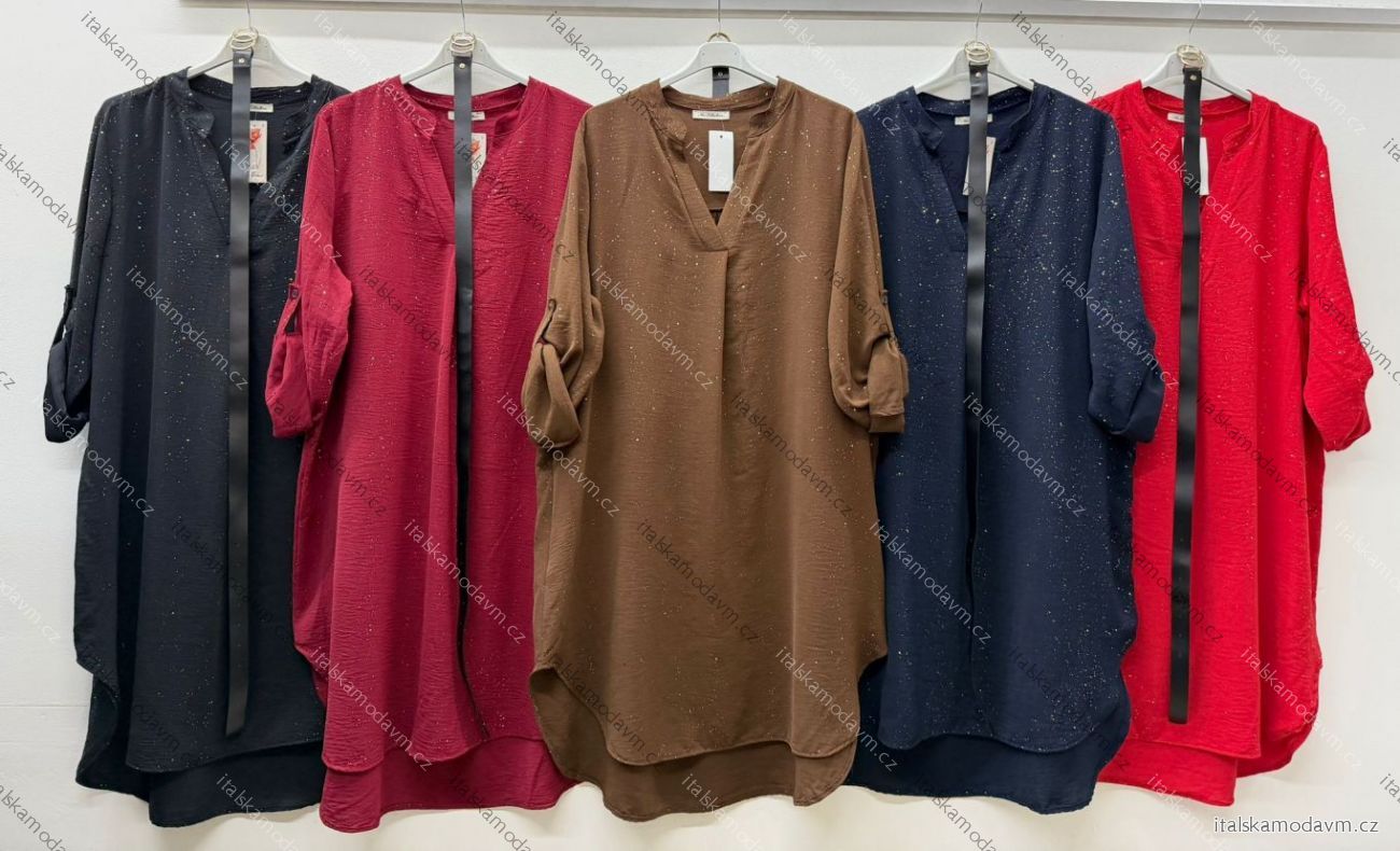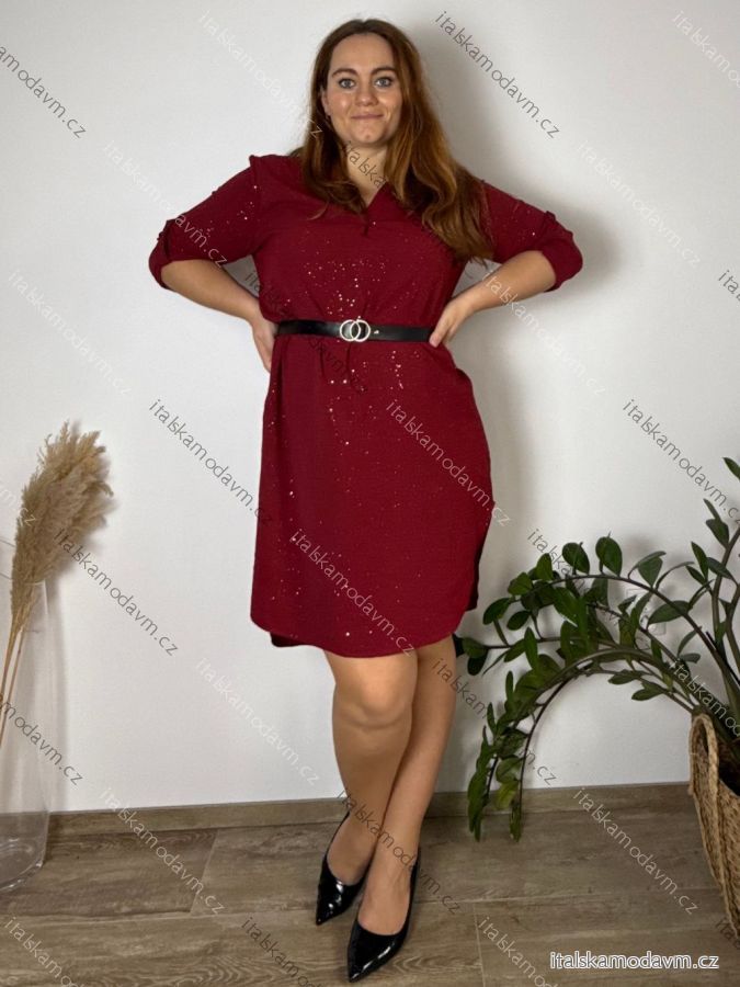 Šaty/Tunika s páskem elegantní 3/4 dlouhý rukáv dámská nadrozměr HELENA (50/52/54 ONE SIZE) ITALSKÁ MÓDA IM425780