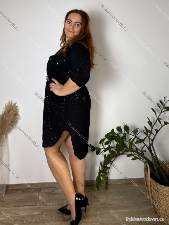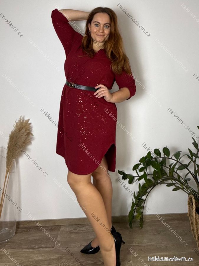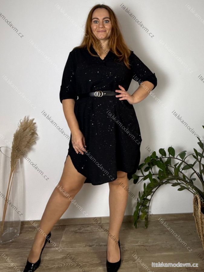 ZBOŽÍ (21637) > Šaty/Tunika s páskem elegantní 3/4 dlouhý rukáv dámská nadrozměr HELENA (50/52/54 ONE SIZE) ITALSKÁ MÓDA IM425780