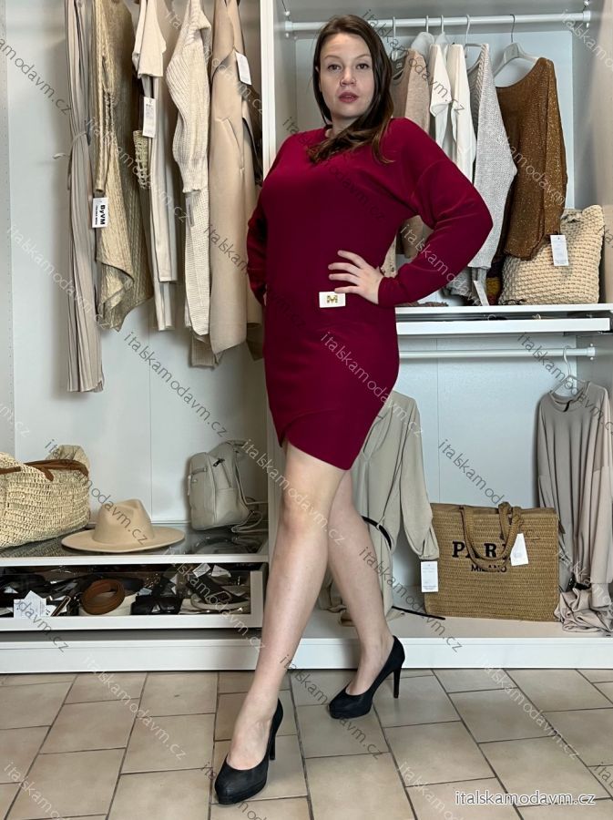 ZBOŽÍ (22753) > Šaty úpletové dlouhý rukáv dámské MARIA (S/M/L ONE SIZE) ITALSKÁ MÓDA IMD25169/DUR S/M/L vínová