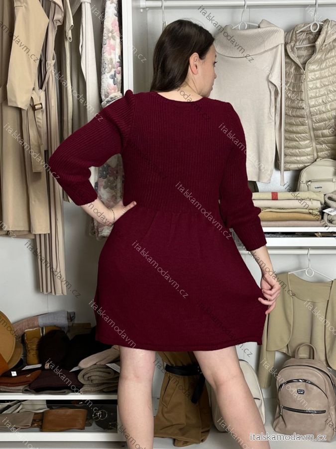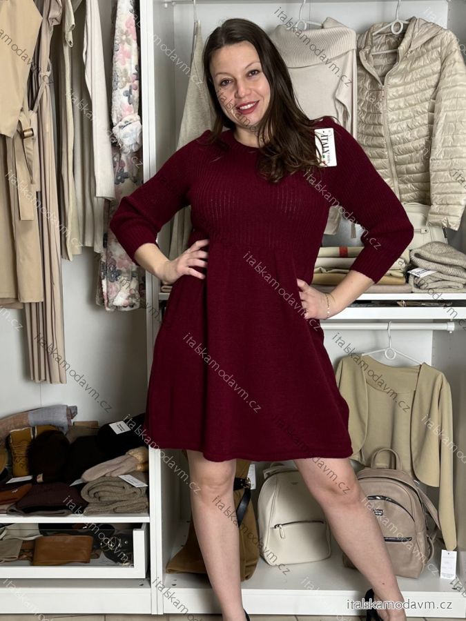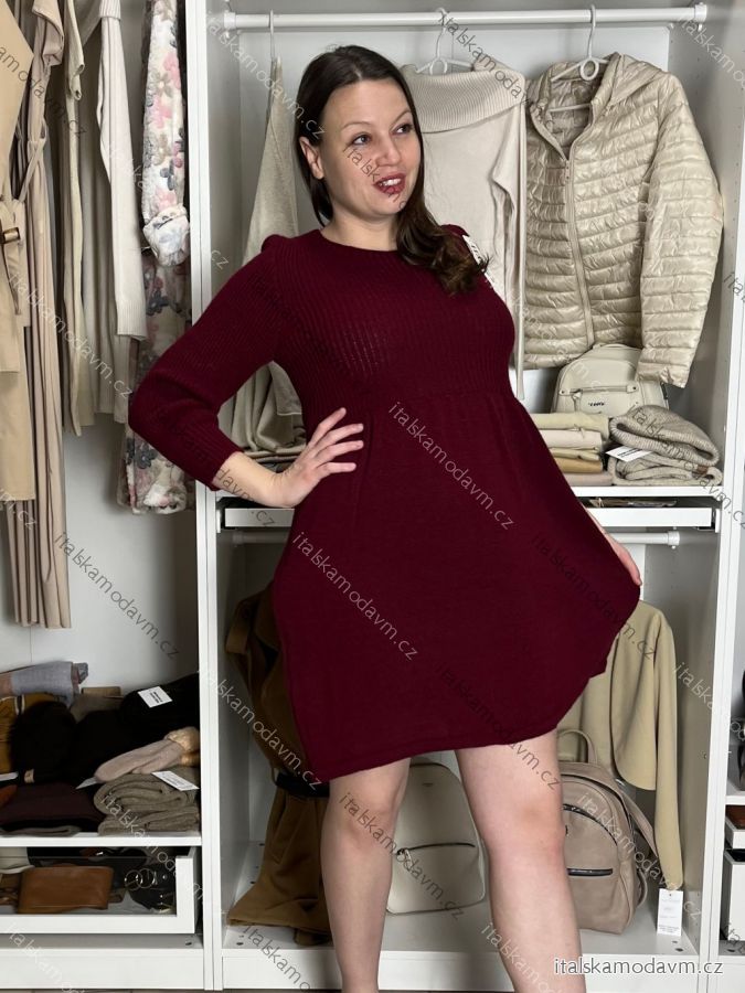 Šaty úpletové teplé dlouhý rukáv dámské LUCY (S/M/L ONE SIZE) ITALSKÁ MÓDA IMD23564/DR S/M/L vínová