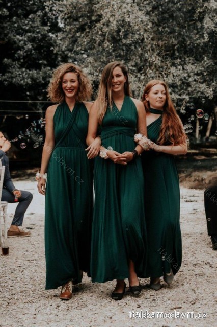 ZBOŽÍ (22821) > Šaty variabilné vázánie dlhé elegantné spoločenské bez rukávov dámske (S/M/L/XL ONE SIZE) TALIANSKA MÓDA IMPBB23A11791/DU - zelená smaragdová - L / XL