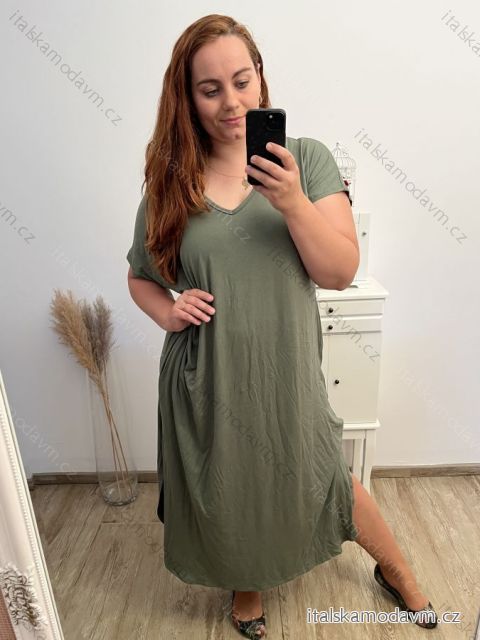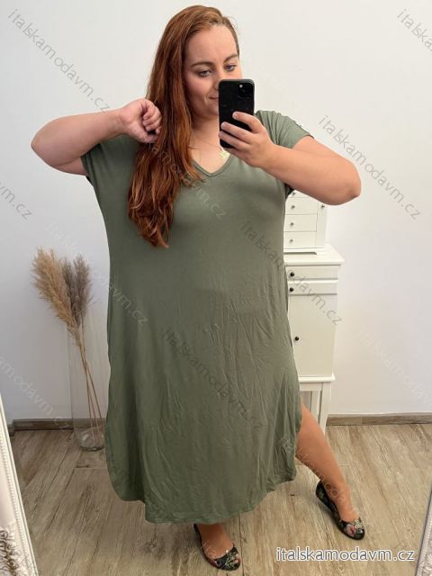 Šaty volnočasové bavlněné krátký rukáv oversize dámské (2XL/3XL/4XL/5XL ONE SIZE) ITALSKÁ MÓDA IM423GIRA/DR 3XL / 4XL khaki