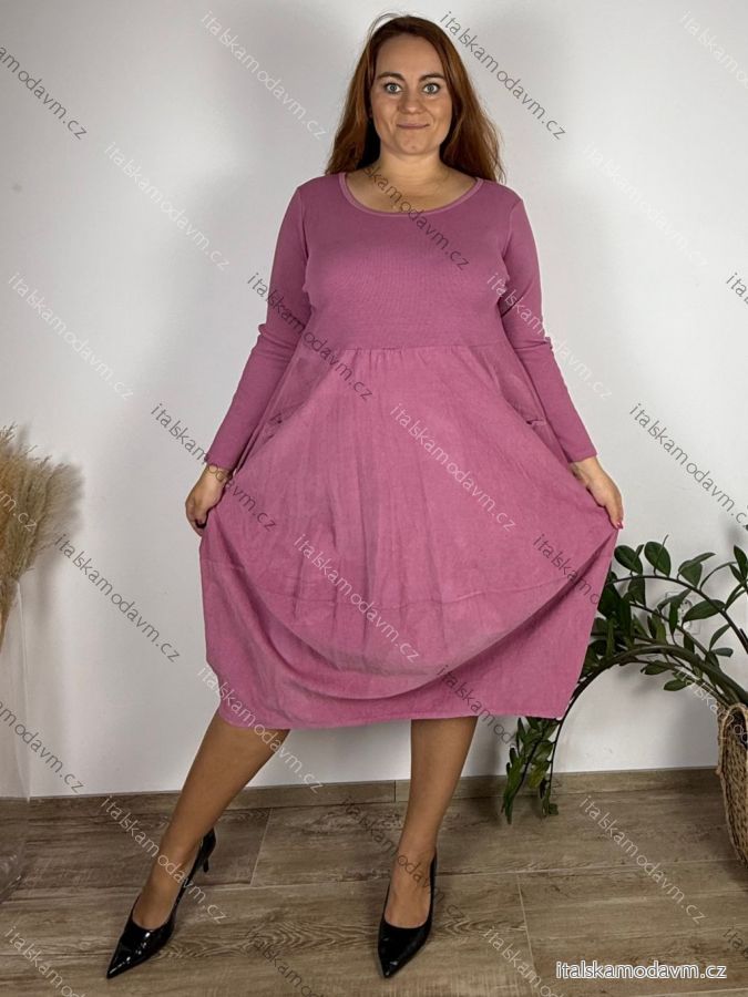 Šaty volnočasové dlouhý rukáv dámské nadrozměr KLAUDIA (44/46/48 ONE SIZE) ITALSKÁ MÓDA IM425559