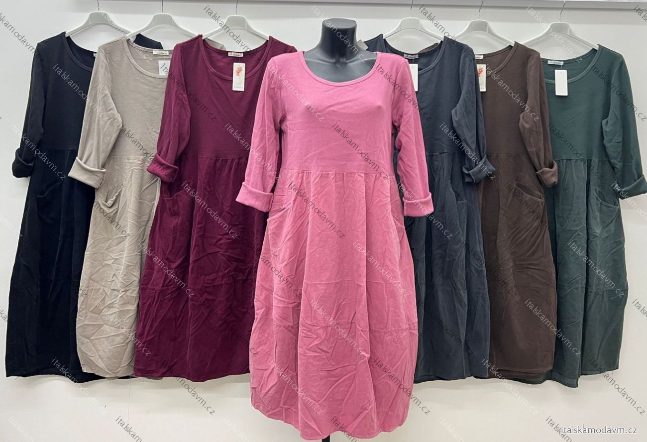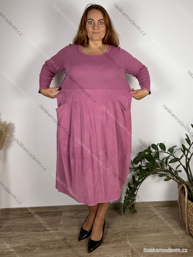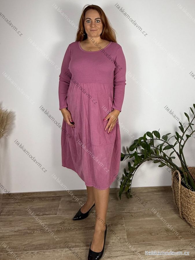 Šaty volnočasové dlouhý rukáv dámské nadrozměr KLAUDIA (44/46/48 ONE SIZE) ITALSKÁ MÓDA IM425559/DR 44/46/48 růžová