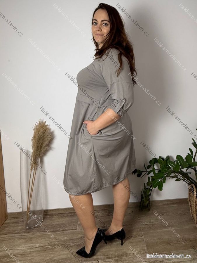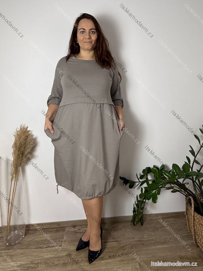 Šaty volnočasové dlouhý rukáv dámské nadrozměr (48/50/52 ONE SIZE) ITALSKÁ MÓDA IM4261113/DR 48/50/52 béžová