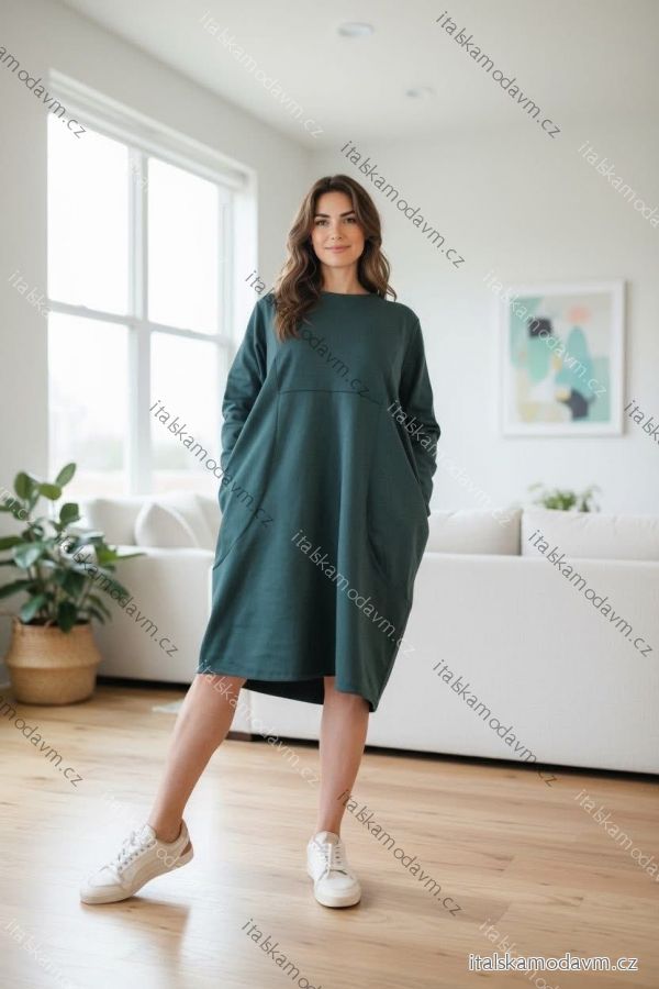 Šaty volnočasové oversize 3/4 dlouhý rukáv dámské nadrozměr (46/48/50 ONE SIZE) ITALSKÁ MÓDA IMD25354