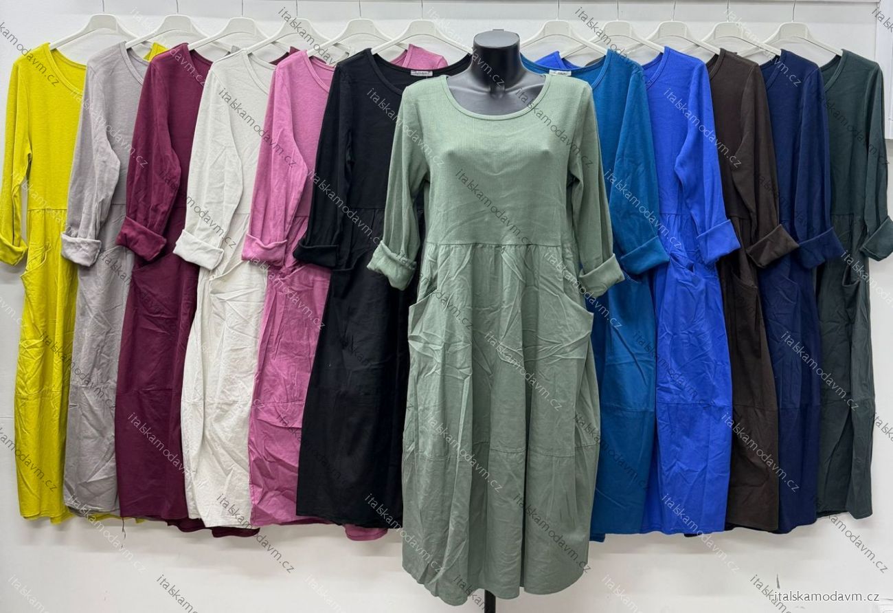 Šaty volnočasové s kapsami dlouhý rukáv dámské nadrozměr (46/48/50 ONE SIZE) ITALSKÁ MÓDA IM425887
