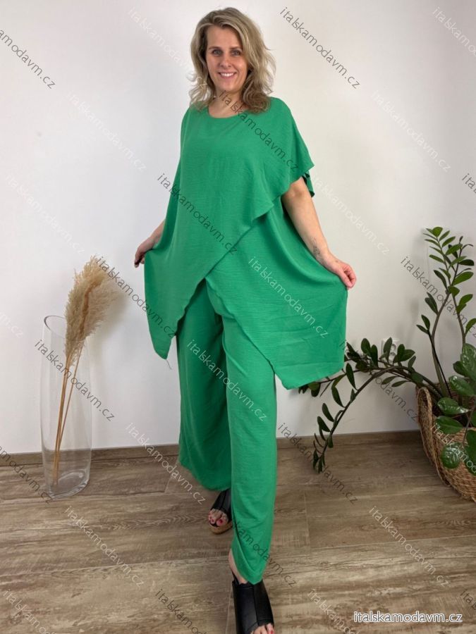 Souprava elegantní, letní kalhoty a tunika dámské nadrozměr SIDONIE (48/50/52/54 ONE SIZE) ITALSKÁ MÓDA IMWTC26001/DU 48/50/52 tmavě růžová