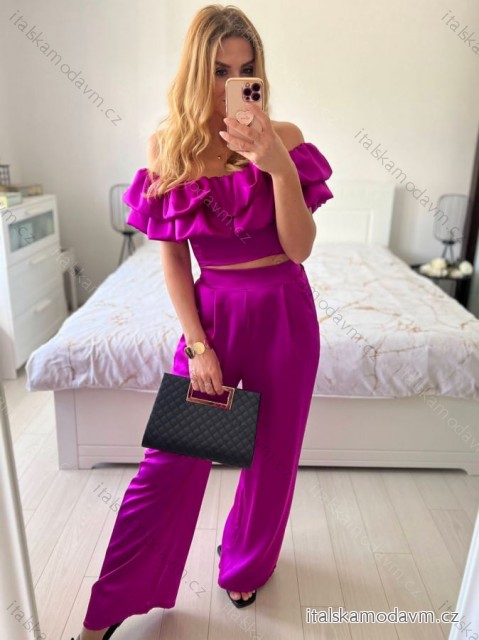Souprava letní saténová top a kalhoty dámská (S/M/L ONE SIZE) ITALSKÁ MÓDA IMWAS24003/DU růžová fuchsiová S/M