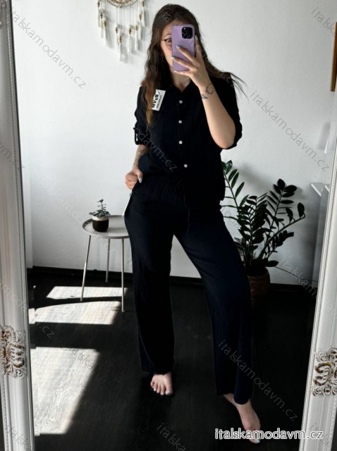 Souprava mušelínová košile a kalhoty dámská (S/M/L ONE SIZE) ITALSKÁ MÓDA IMWBH24013/DUR - bílá - M/L