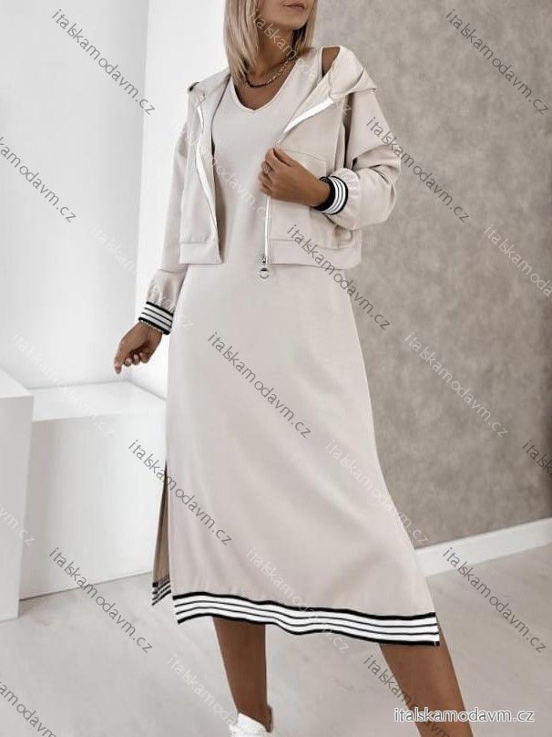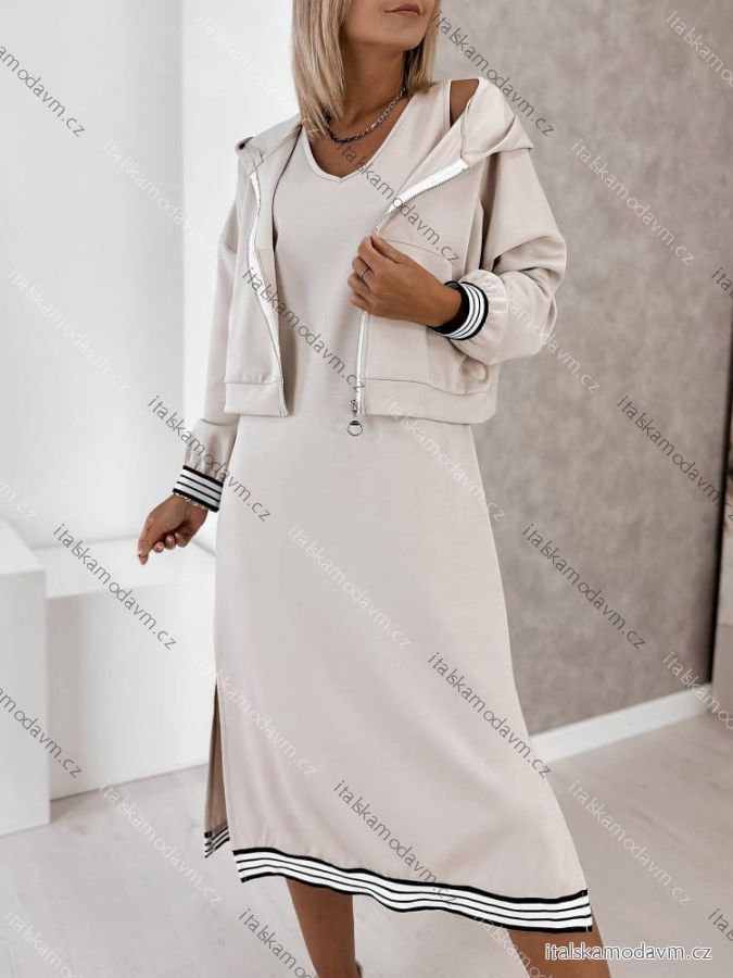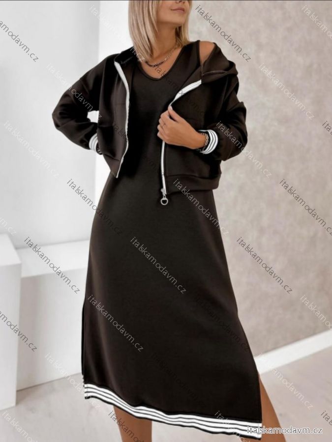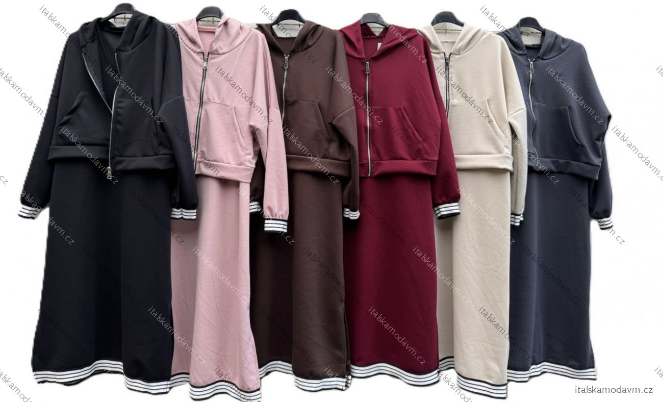 Souprava tepláková šaty s mikinou dámská nadrozměr (48/50/52 ONE SIZE) ITALSKÁ MÓDA IMD25185