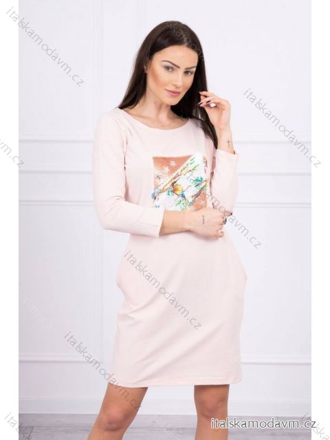 Představujeme vám módní šaty. Šaty mají vpředu našitou grafiku z flitrů. Šaty mají kapsy. Ideální nabídka pro každý den. Šaty jsou vyrobeny z vysoce kvalitního materiálu. Velikost je univerzální a bude vhodná pro dámy na sobě velikosti S, M nebo L.