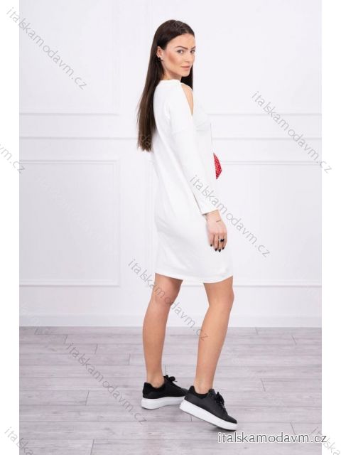 Představujeme vám módní šaty. Šaty mají našitou grafiku s lukem s puntíky. Šaty s broušenými rameny. Ideální nabídka pro každý den. Šaty jsou vyrobeny z vysoce kvalitního materiálu. Velikost je univerzální a bude vhodná pro dámy na sobě velikosti S, M nebo L.