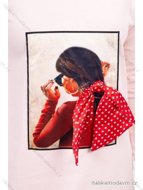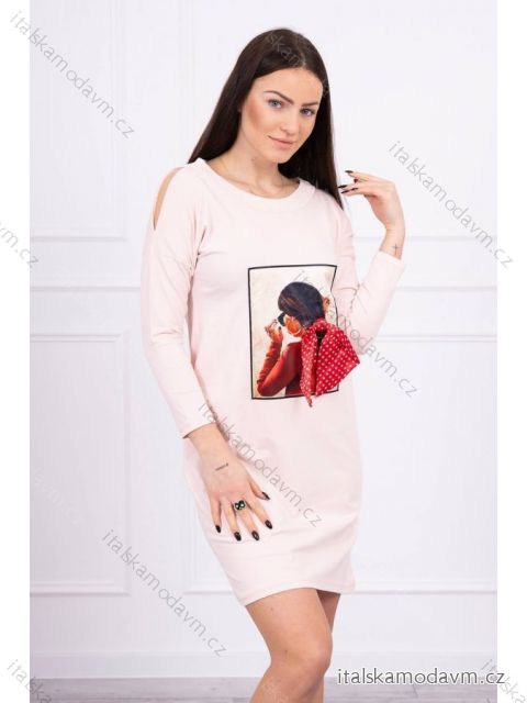 (5354) > Šaty klasik krátky rukáv (119) > Sukienka z grafiką i kokardą w grochy 3D pudrowy róż
