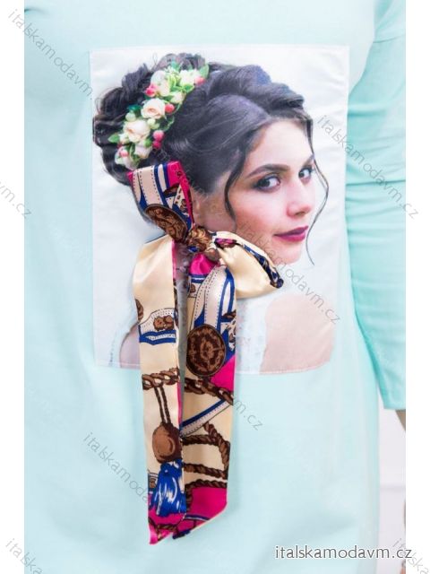 (5354) > Šaty klasik krátky rukáv (119) > Sukienka z grafiką i kolorową kokardą 3D miętowa