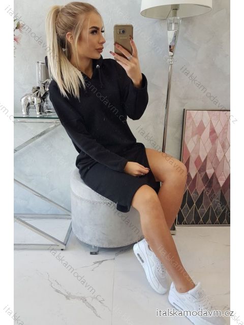 Představujeme vám módní šaty s kapucí. Šaty mají delší záda a boční rozparek. Velmi zajímavá nabídka pro každou z dám. Šaty jsou vyrobeny z vysoce kvalitního materiálu. Velikost je univerzální a bude vhodná pro dámy na sobě velikosti S, M nebo L.