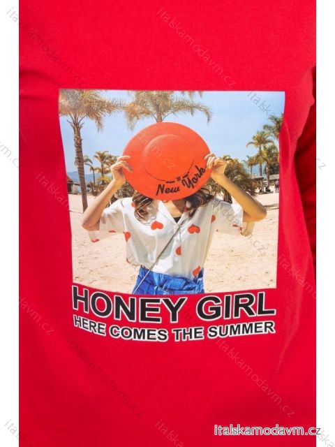 (5445) > Šaty klasik krátky rukáv (119) > Sukienka z nadrukiem Honey girl czerwona