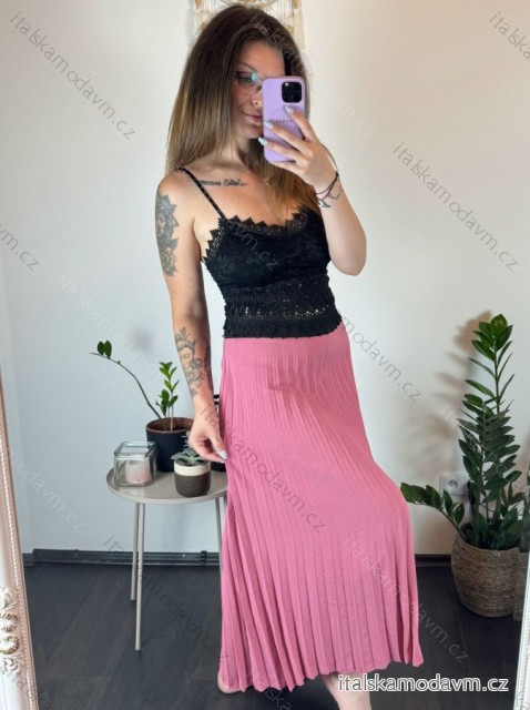 Sukňa skládaná dlhá dámska (S/M ONE SIZE) TALIANSKA MóDA IMSM24036/DR čierna S / M