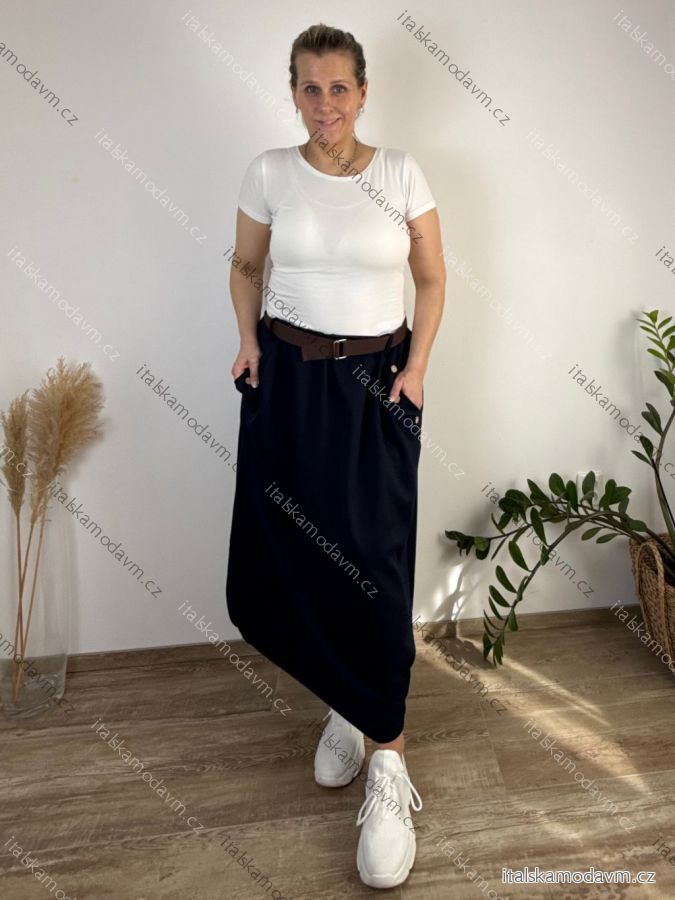 Sukně dlouhá s páskem oversize dámská nadrozměr (50/52/54 ONE SIZE) ITALSKÁ MÓDA IM425632