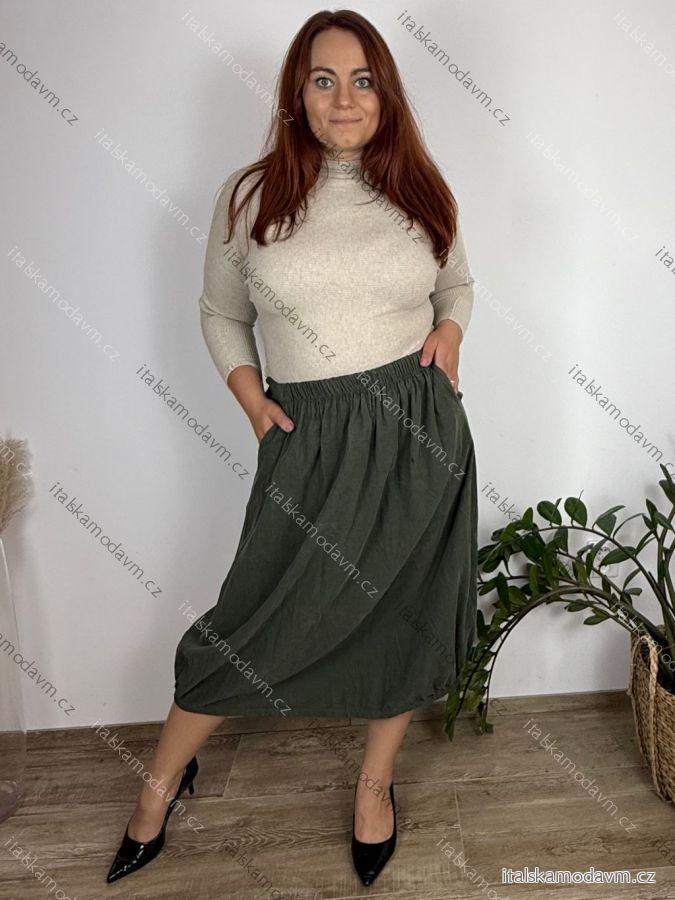 ZBOŽÍ (22594) > Sukně manžestrová dámská nadrozměr INNA (48/50/52 ONE SIZE) ITALSKÁ MÓDA IM4251143/DUR 48/50/52 zelená khaki