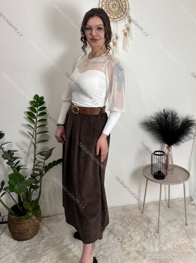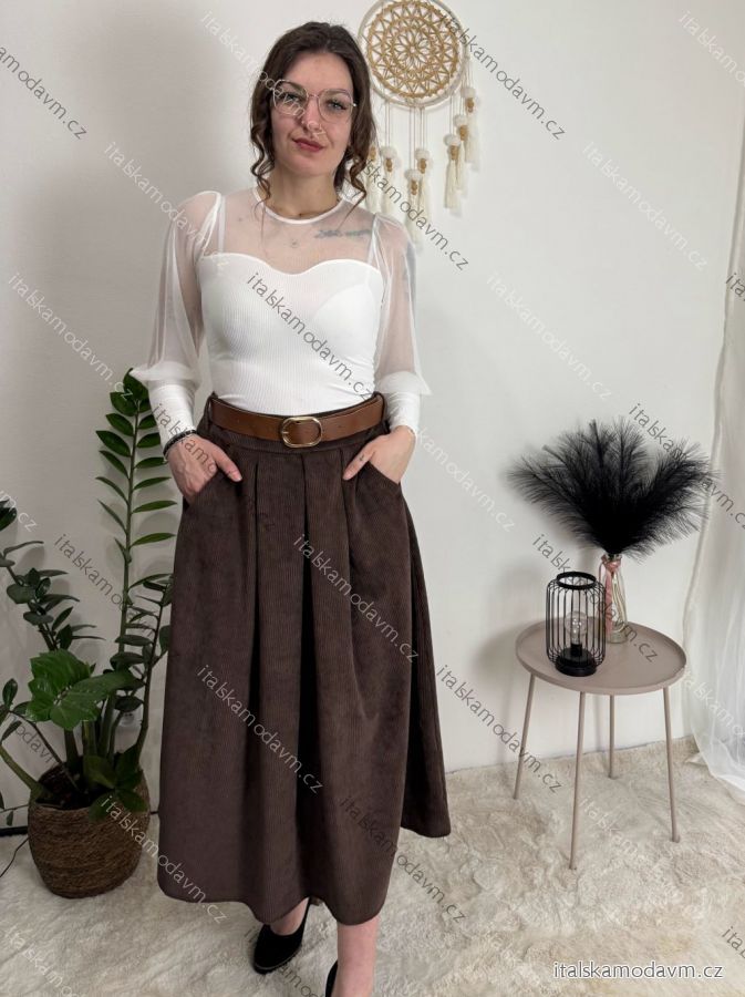ZBOŽÍ (21991) > Sukně manžestrová s páskem dámská (S/M/L ONE SIZE) ITALSKÁ MÓDA IMPLU2552123/DU béžová S/M/L