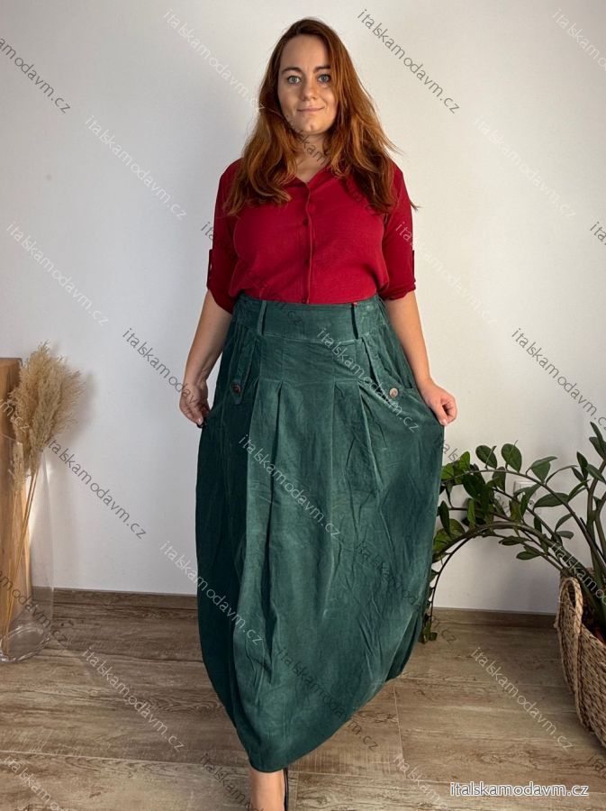 ZBOŽÍ (21839) > Sukně s páskem manžestrová dámská MONA (42/44/46 ONE SIZE) ITALSKá MóDA IMSM251161/DUR 42/44/46 tmavě smaragdová