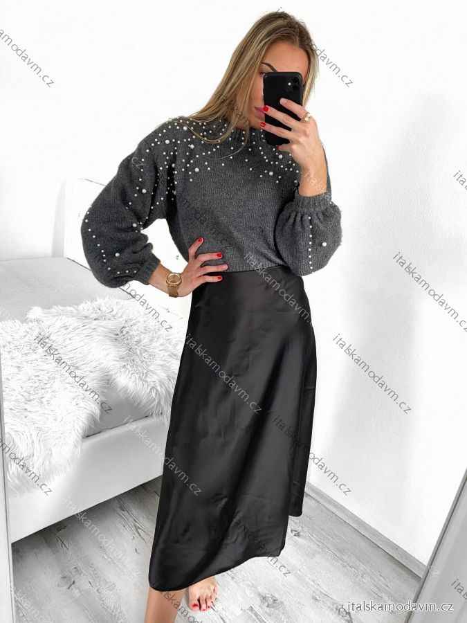 Sukně středně dlouhá saténová dámská (S/M ONE SIZE) ITALSKÁ MÓDA IMM23UN6886