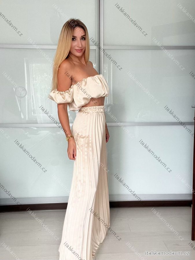 Súprava elegantný top krátky rukáv a nohavice dlhé dámske VERONA (S/M/L ONE SIZE) TALIANSKA MÓDA IMPOC2510102 S/M/L béžová