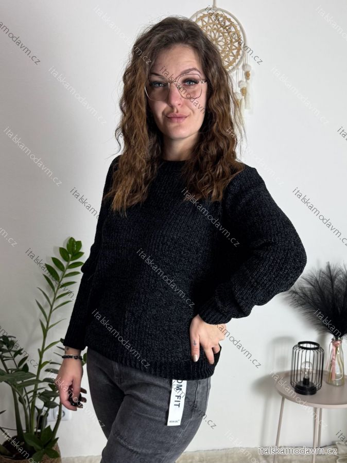 Sveter pletený dlhý rukáv dámsky AGNES (M/L-XL/2XL) AMBITIONFLY AMB25N413T/DU černá XL/2XL