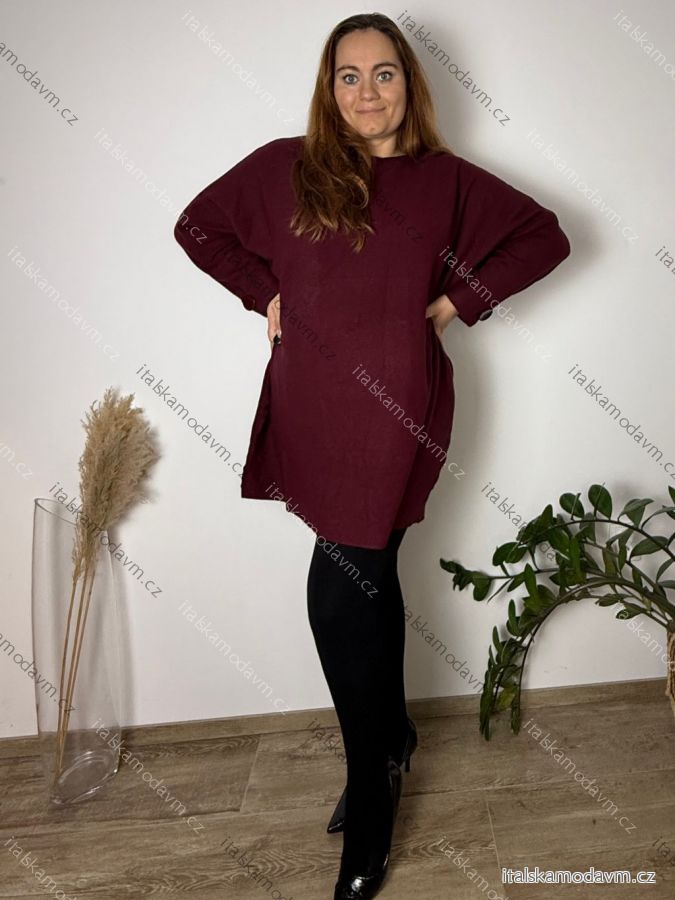Sveter prodloužený úpletový dlhý rukáv dámsky nadrozměr GINNY (54/56/58 ONE SIZE) TALIANSKA MÓDA IM425784/DU 54/56/58 vínová