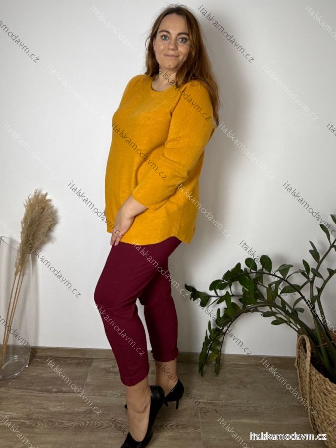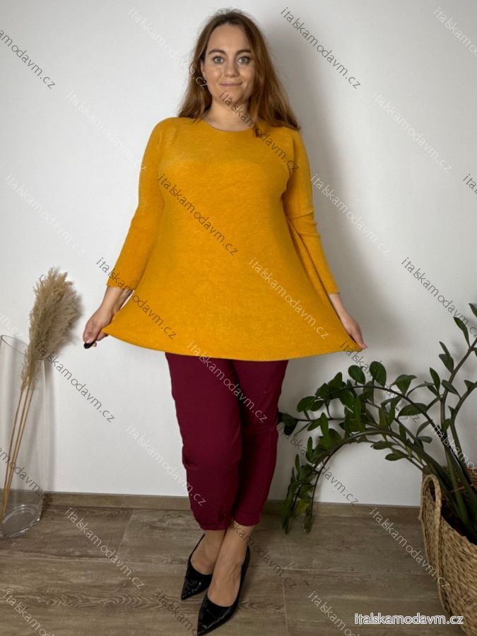 Sveter úpletový dlhý rukáv dámsky nadrozmer (54/56/58 ONE SIZE) TALIANSKA MÓDA IMC25516/DUR žlutá okrová