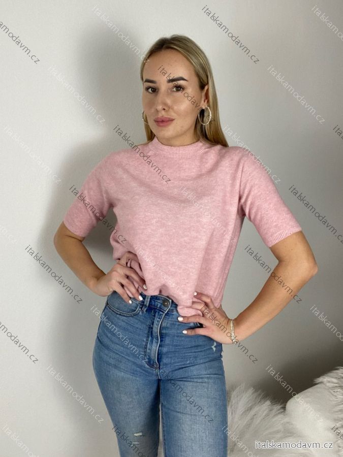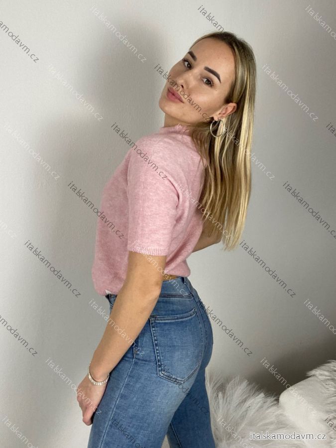 Sveter úpletový krátký rukáv dámsky (S/M/L ONE SIZE) TALIANSKA MÓDA IMSM261114/DUR S/M/L růžová světlá