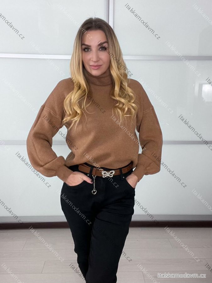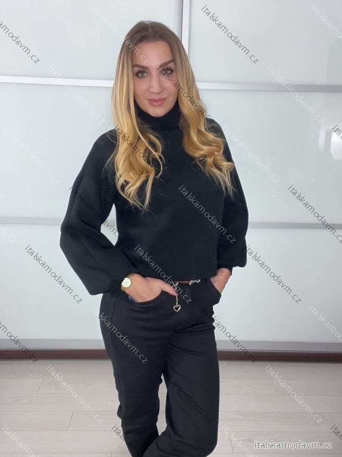 Sveter úpletový s rolákom dlhý rukáv dámsky (S/M/L ONE SIZE) TALIANSKA MÓDA IMC25560/DU S/M/L čierna