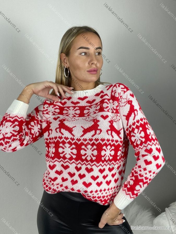 Sveter vánoční úpletový dlhý rukáv dámsky (S/M/L ONE SIZE) TALIANSKA MÓDA IMWH25002/DUR hnědá světlá S/M/L